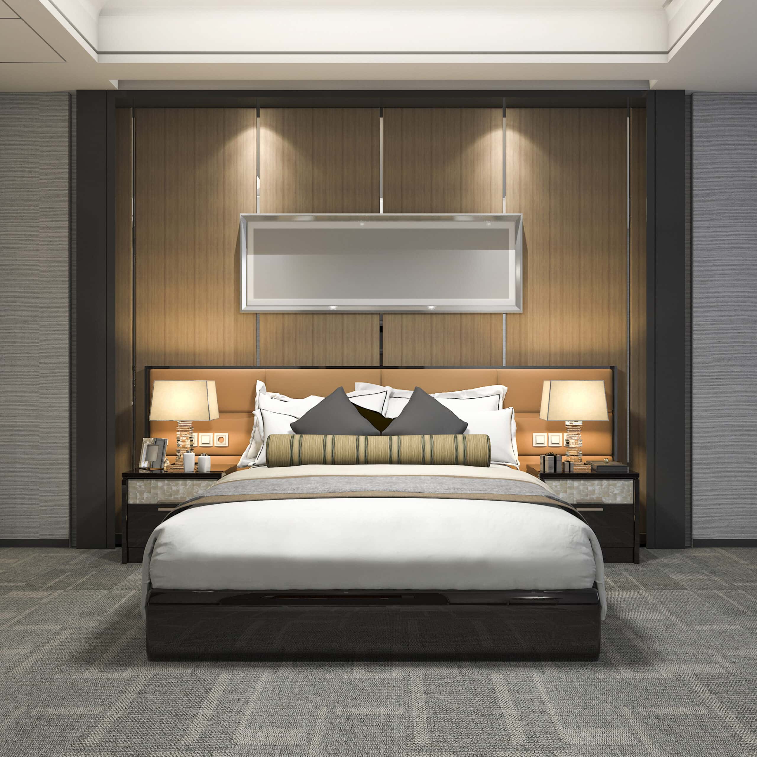 3d rendering modern luxury bedroom suite and bathroom
