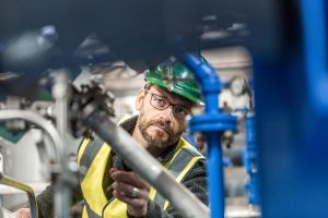 Manufacturing worker analysing machines at factory